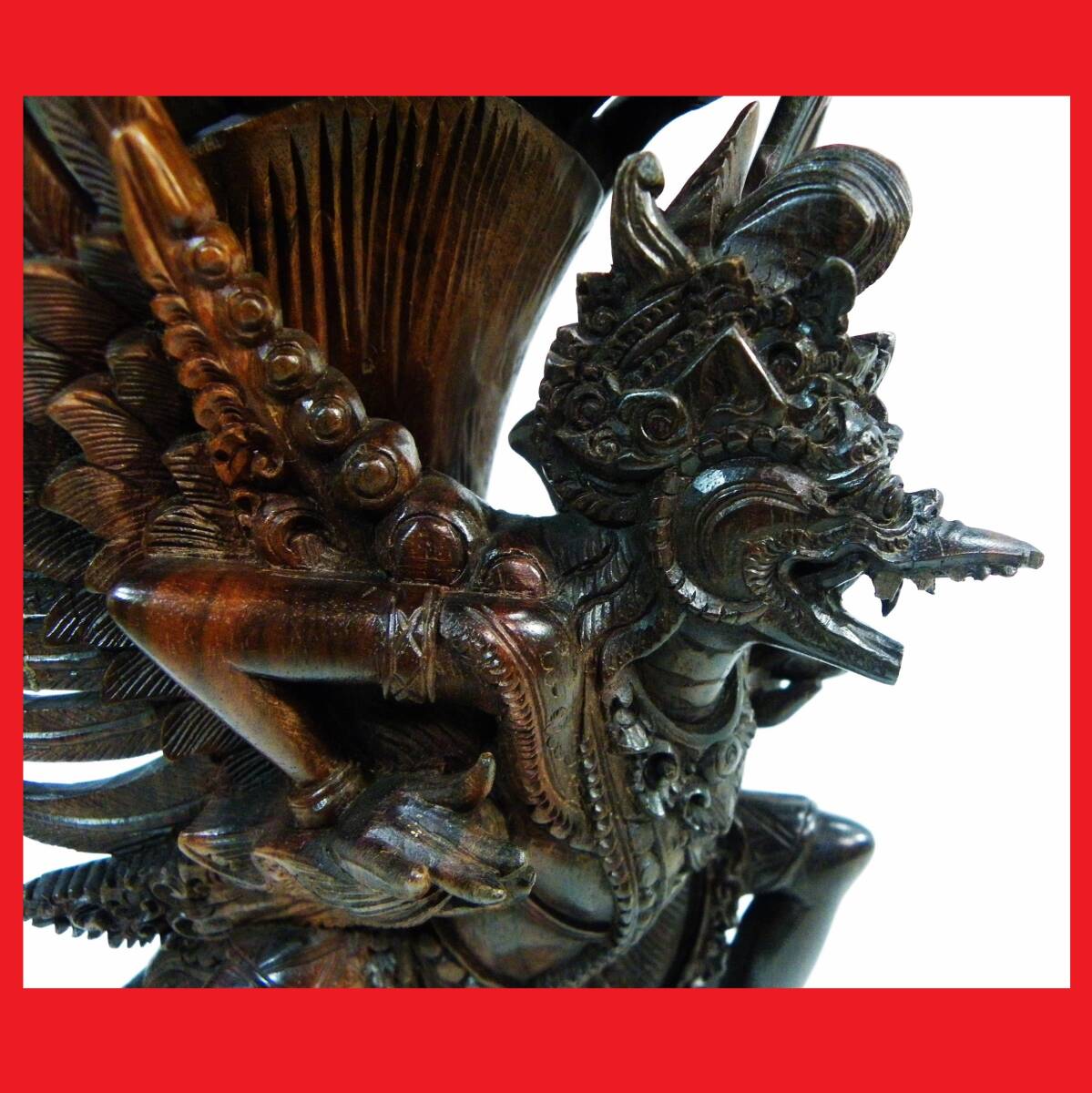 - ゆうパック.80サイズ送料記載済み インドネシア ガルーダ 神鳥 木彫り 置物 民芸品 木製 飾り オブジェ 東洋お店等(赤枠.樂多我)