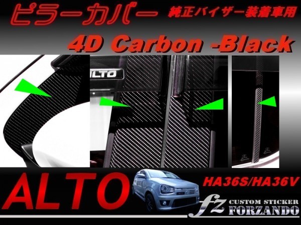 > アルトワークス HA36 ピラーカバー 純正バイザー車 4Dカーボン調 RS 車種別カット済みステッカー専門店 fz
