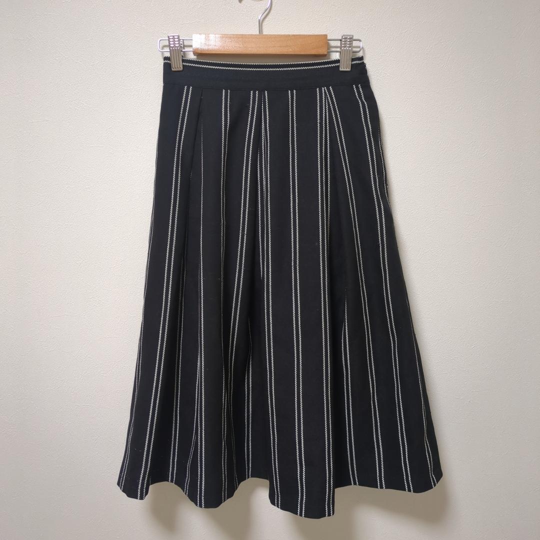 - ムルーア(S)ストライプひざ丈フレアスカート*伸縮性*裏地*サイドジッパー*黒