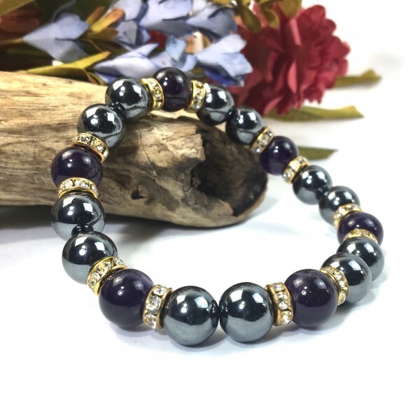 > ヘマタイト×アメジスト パワーストーン ブレスレット 天然石ブレス (ゴールド) 10mm メンズ・レディース 健康運 勝利 還暦祝い