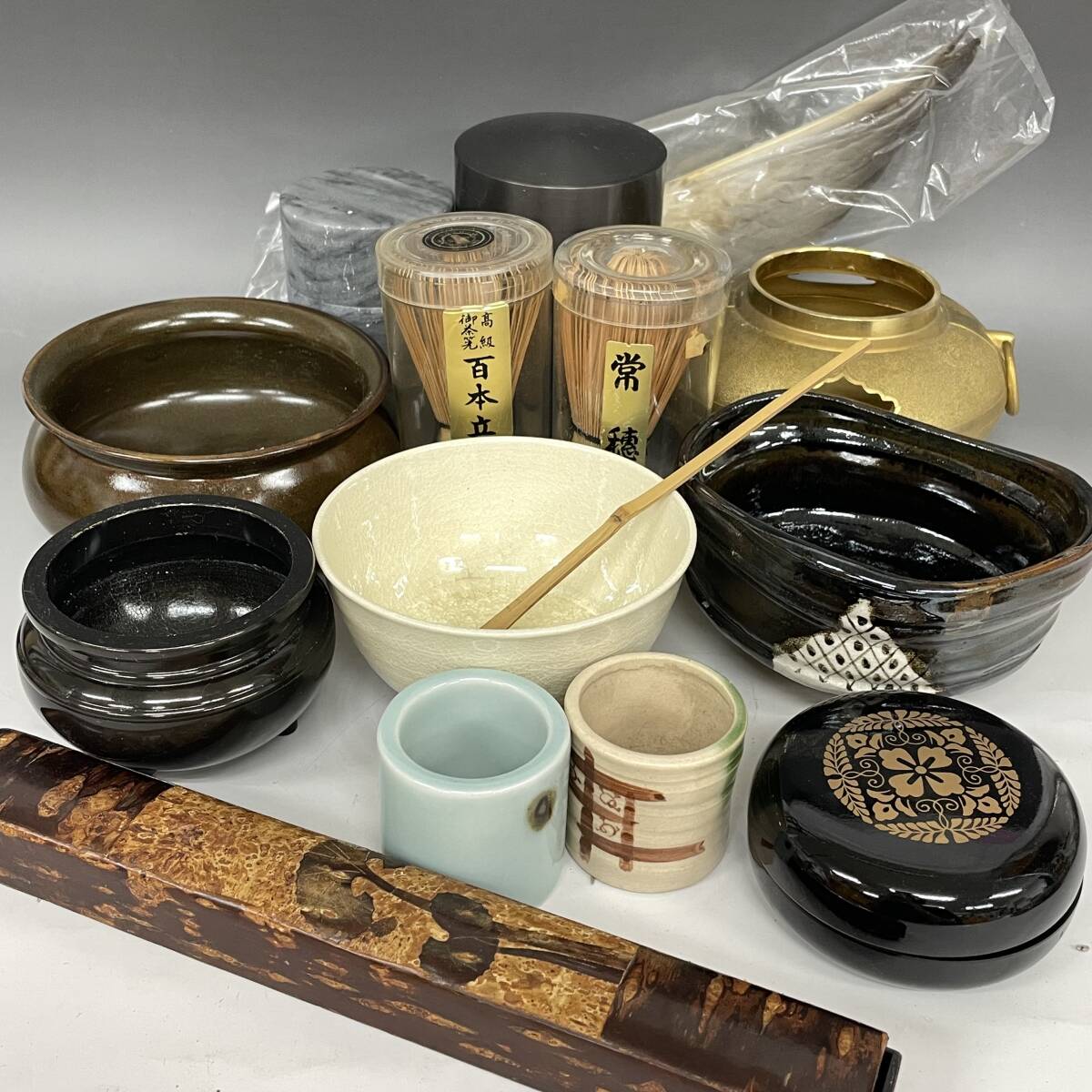 > KF14/24 茶道具 茶碗 まとめて 15点 在銘 抹茶 煎茶 陶印 工芸品 茶碗 羽根帚 茶杓 茶筅 茶筒 香炉 茶釜 等 大量 セット
