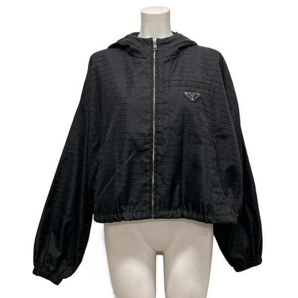 > プラダ PRADA ブルゾン サイズ40 M - 黒 レディース 長袖/トライアングルロゴ/クロップド丈/Re-Nylon/2022AW/春/秋 美品 ジャケット