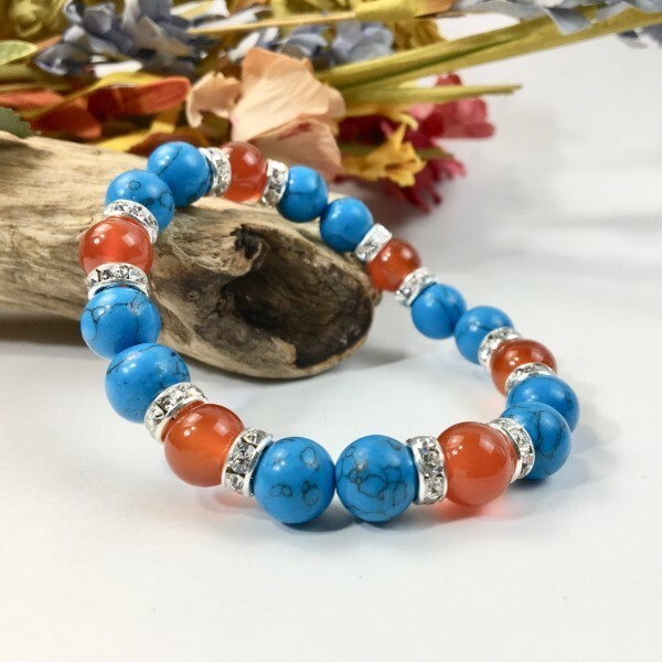 - パワーストーン ターコイズ×赤瑪瑙 ブレスレット (シルバー) 10mm メンズ・レディース 成功 繁栄 安全