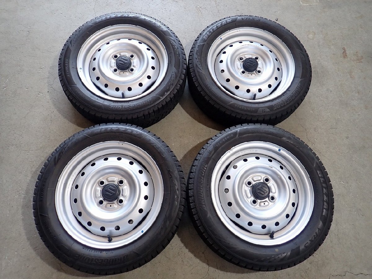 > YS21858【送料無料155/65R14】スズキ純正スチール ワゴンR スペーシア ラパン等に 中古スタッドレス ●14×4.5J 100/4H ET約45●