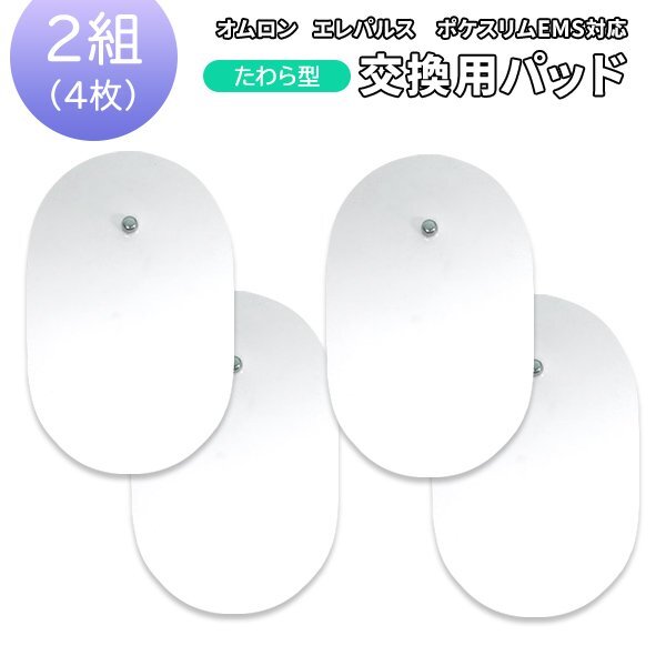 - 送料無料 ポケスリムEMS 対応 パッド 俵型 2セット 4枚 / たわら オムロン 互換 楕円形 交換用 替え パット 男女兼用 EMS ポケスリム