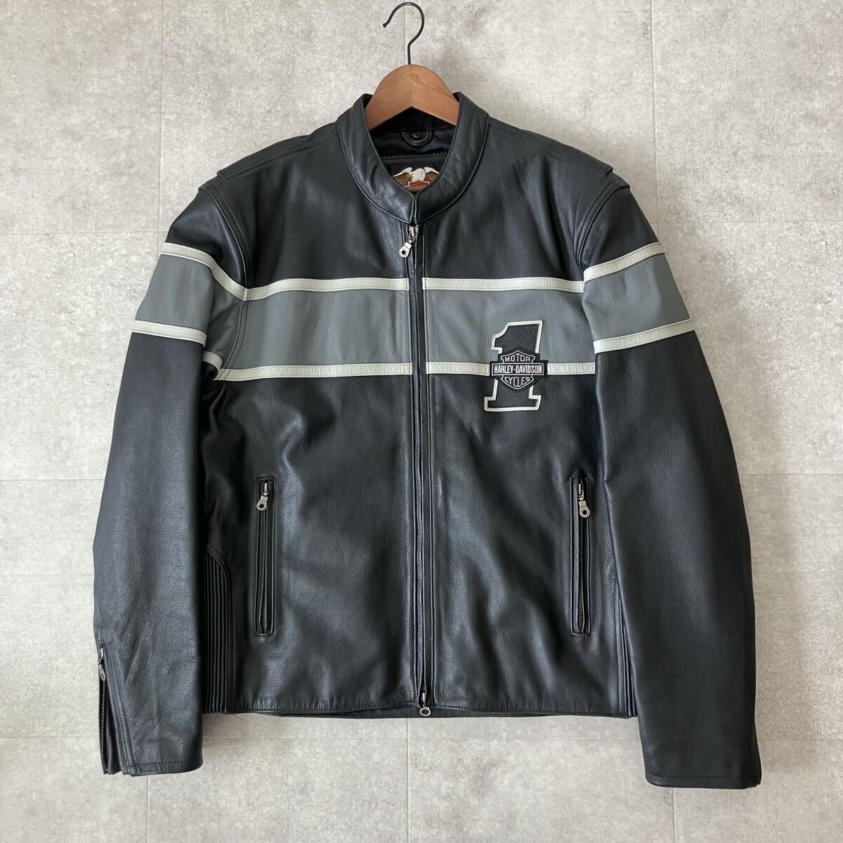 > ●【男のマストアイテム】Harley-Davidson ハーレーダビッドソン 本革 シングル ライダースジャケット/黒/バイク/size(L)/刺しゅうロゴ