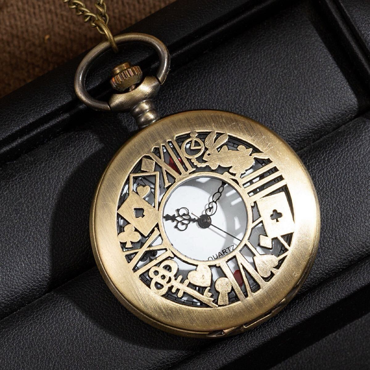 - 不思議の国のアリス 懐中時計 A レトロ アンティーク ペンダント うさぎ トランプ ポケットウォッチ ゴールド ネックレス