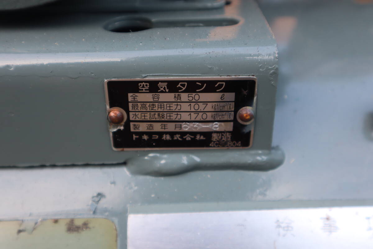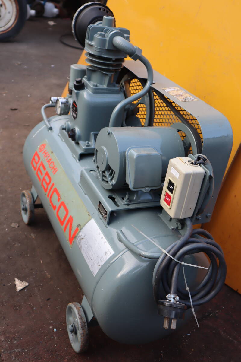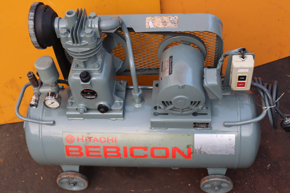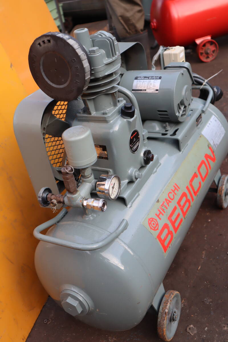 - 日立 HITACHI エアーコンプレッサー 0.75P-9.5V 50Hz 0.75kW(1馬力) 三相200V タンク50L 整備点検塗装済み 動作確認済 即決価格