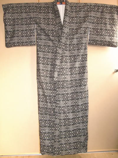 - 掘り出しました!2000円菱型文正絹袷小紋 お稽古着 中古品