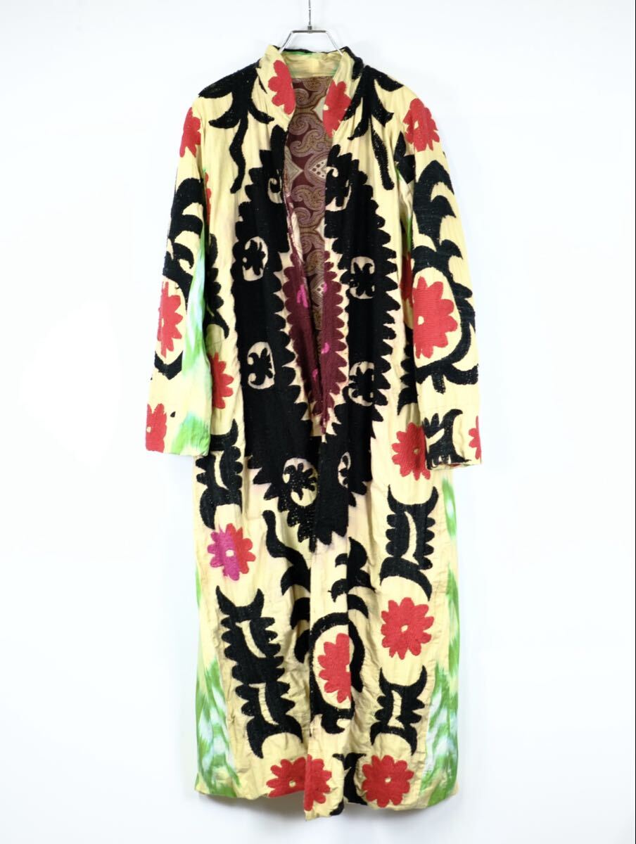 - ビンテージ スザニ刺繍 ガウンコート ジャケット 総柄 古着屋 民族衣装 アート ヴィンテージ デザイン ハンドメイド