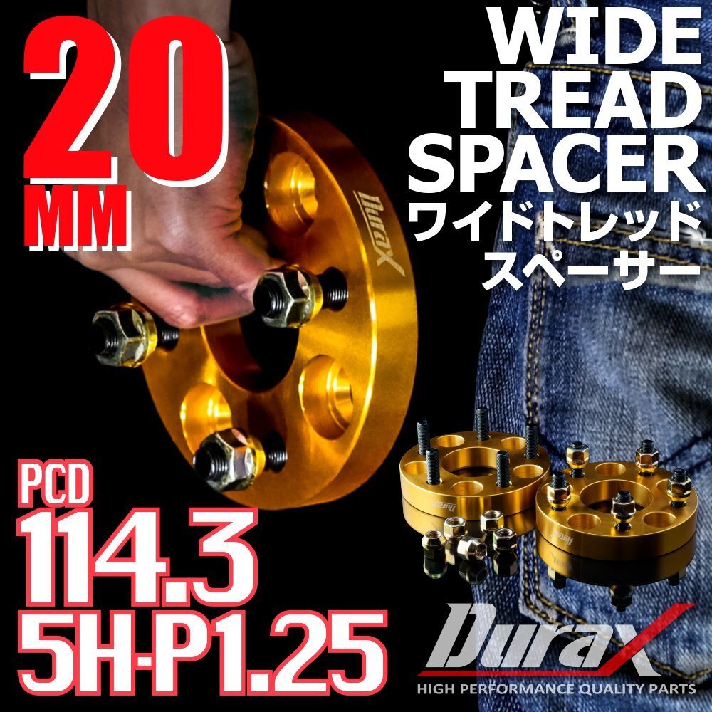 > DURAX ワイドトレッドスペーサー 20mm PCD114.3 5H P1.25 ステッカー付 ゴールド 2枚 ホイール スペーサー ワイトレ 日産 スズキ スバル
