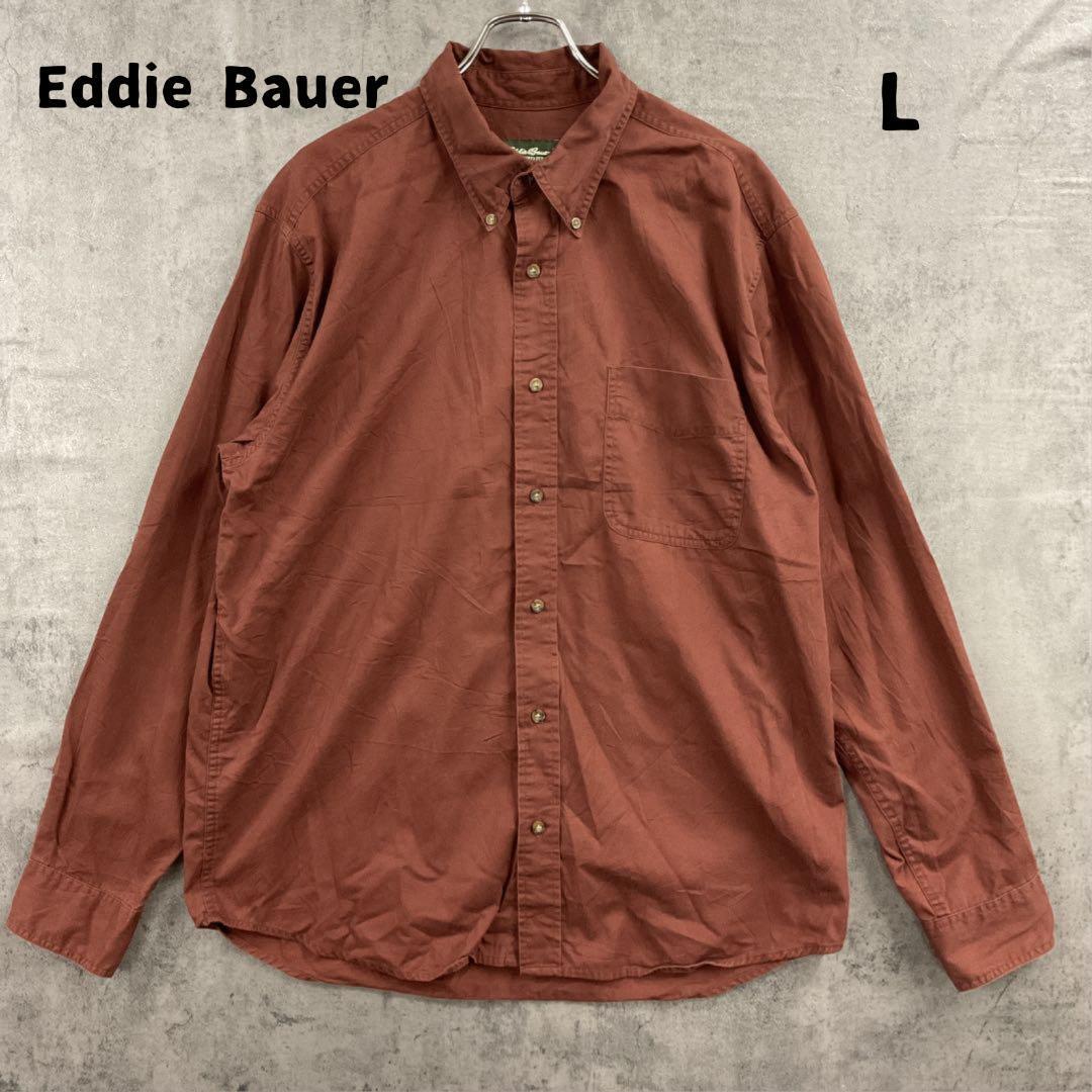- エディーバウアー USA古着 長袖シャツ 赤茶 ボタンダウン 無地 L【5915