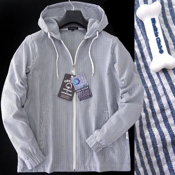- 新品 シェルティークラブ シアサッカー フード ブルゾン L 白 灰 ストライプ 【SH1441101_97_L】 Sheltie Club メンズ 春夏 盛夏