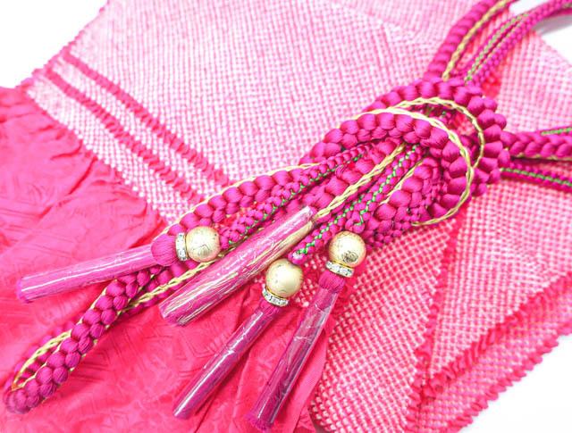 - 《京都一輝堂》【着物】 和装小物 帯締め 帯揚げ セット 帯締 帯揚 振袖用 総絞り 丸組 金糸 ラインストーン 長尺 24W-503