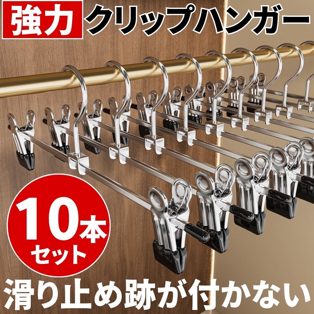 - クリップハンガー 強力 10本 軽量 滑り止め 可動式 金属フック ピンチバネ 洗濯バサミPVC素材 衣類用ラック スカート パンツ ズボン タオル