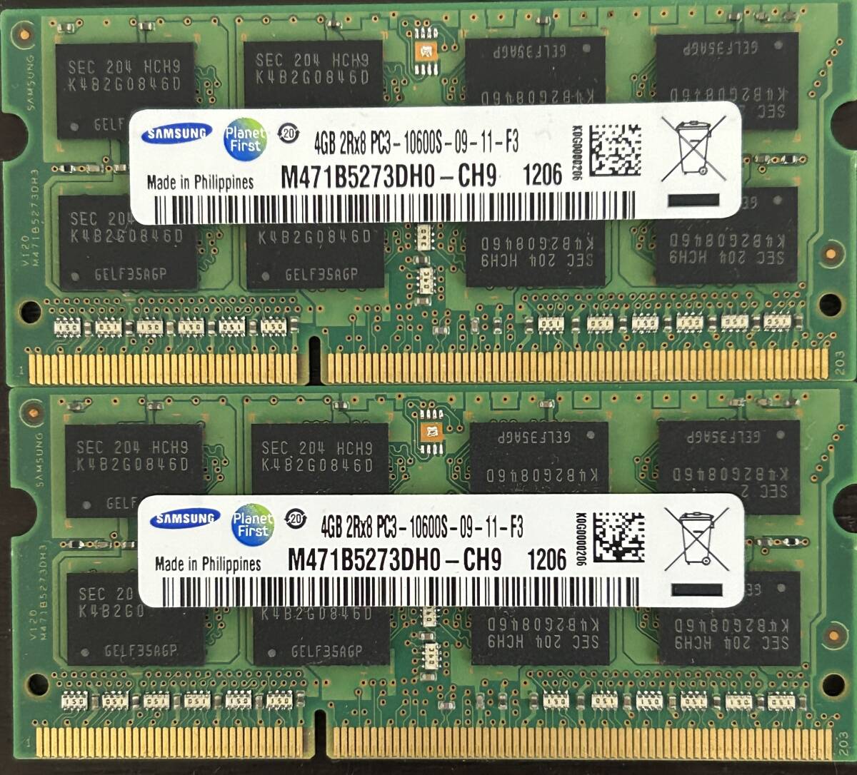 - 即決 動作確認済み SAMSUNG サムスン SO-DIMM 204pin DDR3 PC3-10600S 4GB×2枚 ノートパソコン用 709