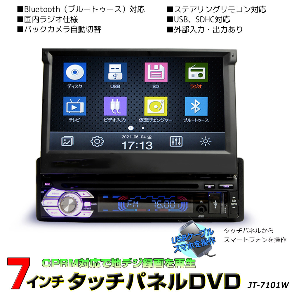 - 地デジCPRM対応 1DINインダッシュ7インチタッチパネル DVDプレーヤー スマホ連動 ラジオUSB SD 動画 音楽再生 外部入出力1din【一年間保証