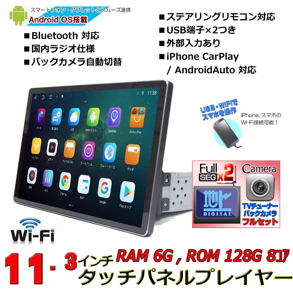 - 大画面1DIN11.3インチタッチパネルRAM6GBROM128GB8core+地デジ2x2フルセグチューナーセット+170度バックカメラセットAndroidWiFi