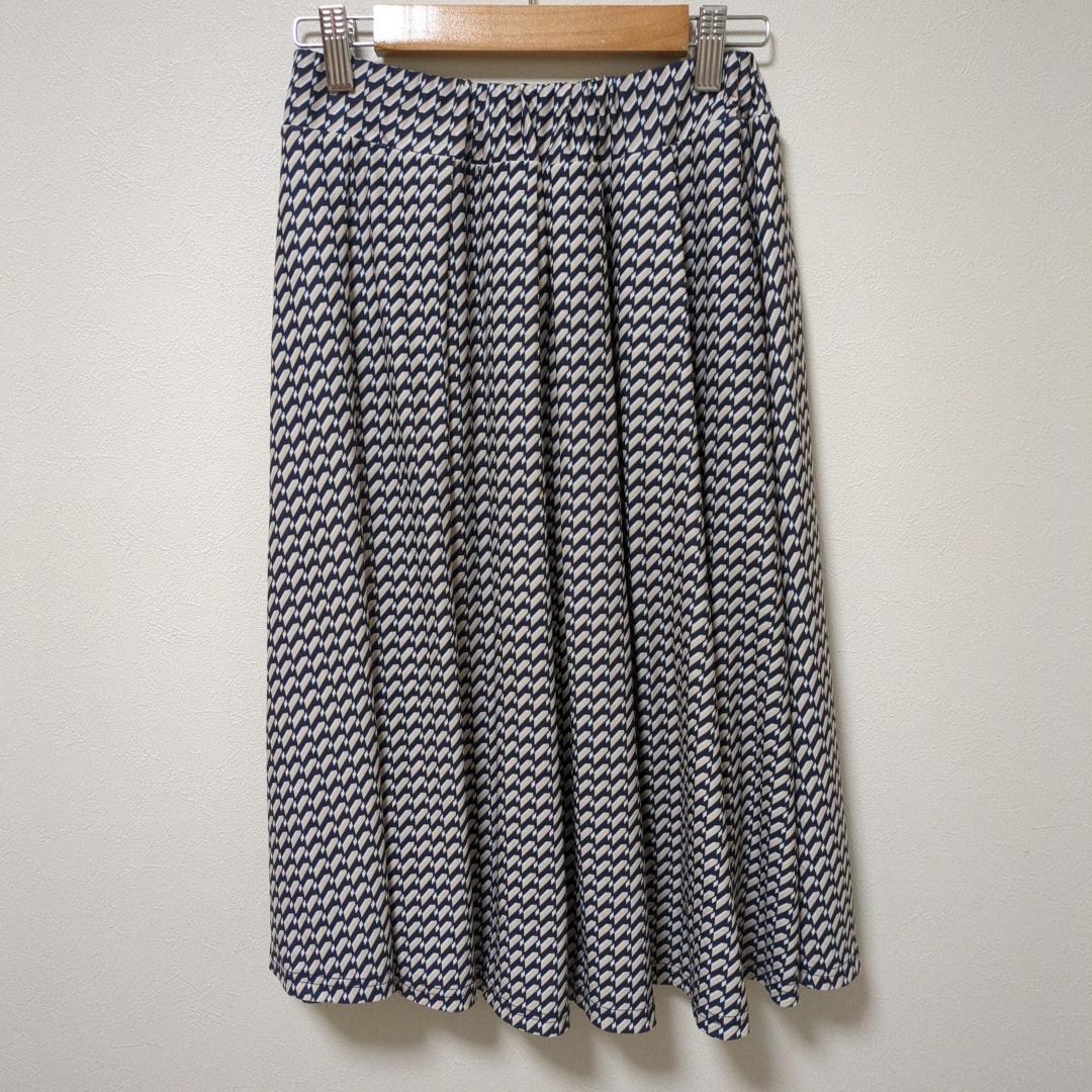 - 幾何学柄ひざ丈プリーツスカート(ONE)総柄*裏地*総ゴム*上品*シンプル