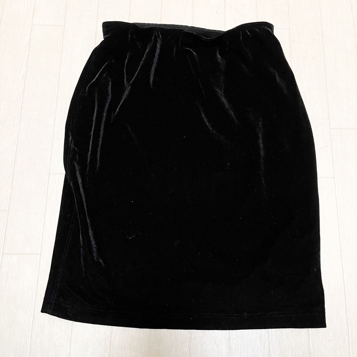 - 和850★ 伊太利屋 タイトスカート 膝丈ほど ベロア ゴムウエスト 11 ブラック レディース
