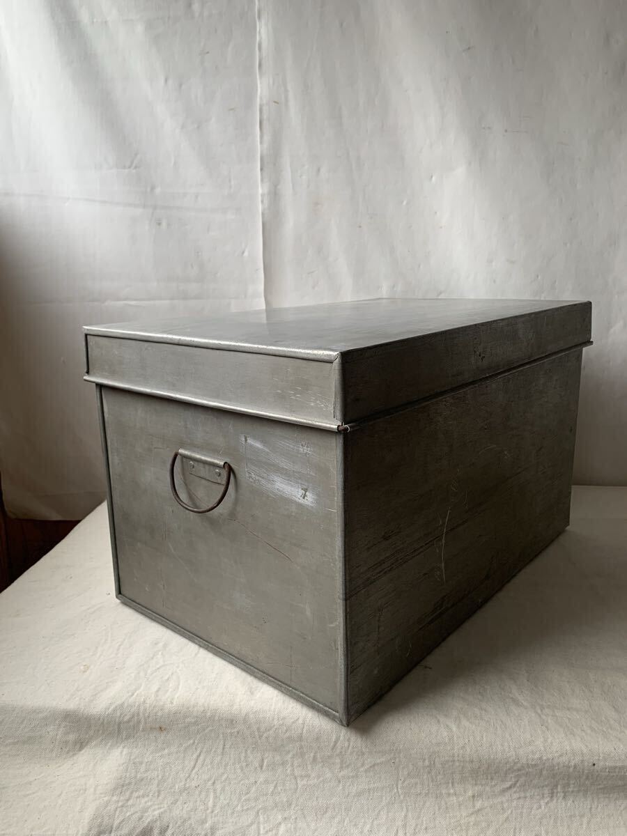 - 持ち手付蓋付アルミケース 古道具アンティークビンテージインダストリアル工業系昭和レトロインテリアディスプレイ収納整理小物入店舗什器