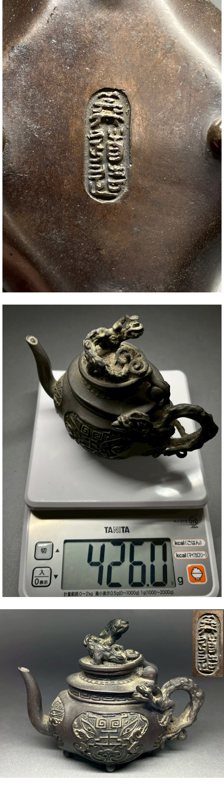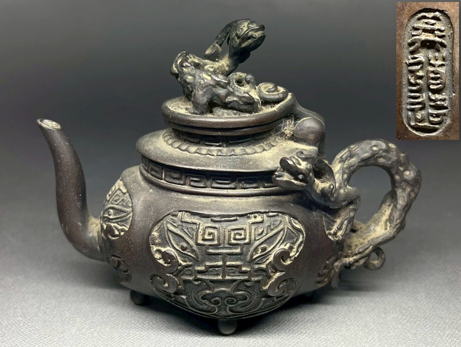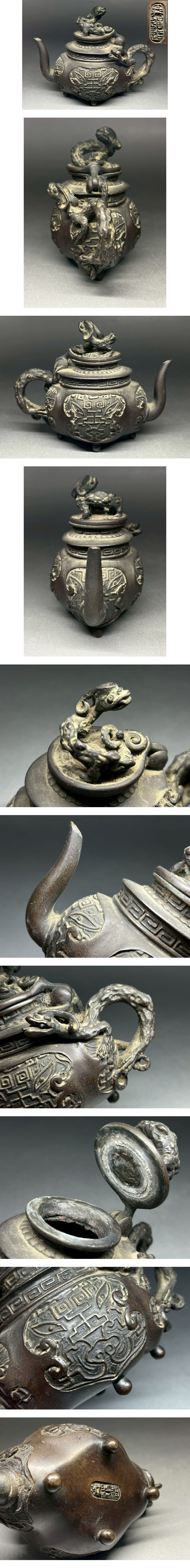 - 中国美術 銅製龍像急須 重426.0g 水差 茶器 古玩 落款 在銘 作家 骨董 置物 飾物 金属工芸 芸術 古美術 旧蔵出 貴重 時代物 長崎買取