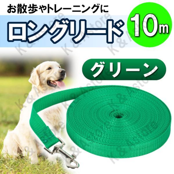 - ロングリード 10m 犬用 ドッグラン ペット 散歩 小型犬 中型犬 大型犬 長い リード 絡まない しつけ トレーニング グリーン 緑