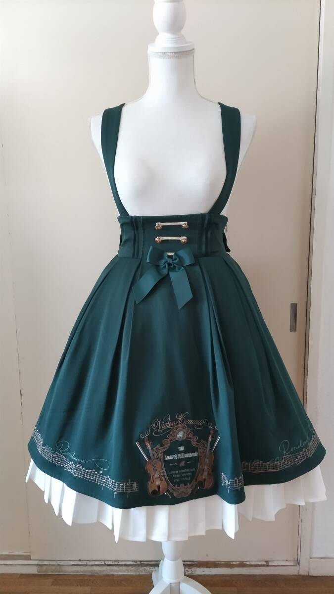 - No.5040_グリーン楽器音符刺繍裾プリーツサススカート