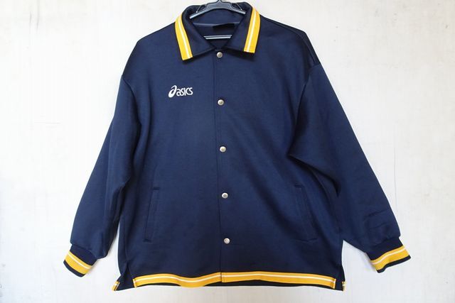 > asics/アシックス/XB1138/長袖トラックジャケット/ジャージ素材/前スナップボタン/山吹色・白ラインテープ/紺/ネイビー/Mサイズ(10/1R7)