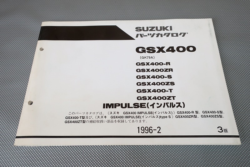 > 即決!インパルス400/3版/パーツリスト/GSX400-R/ZR/S/ZS/T/ZT/GK79A/パーツカタログ/カスタム・レストア・メンテナンス/92