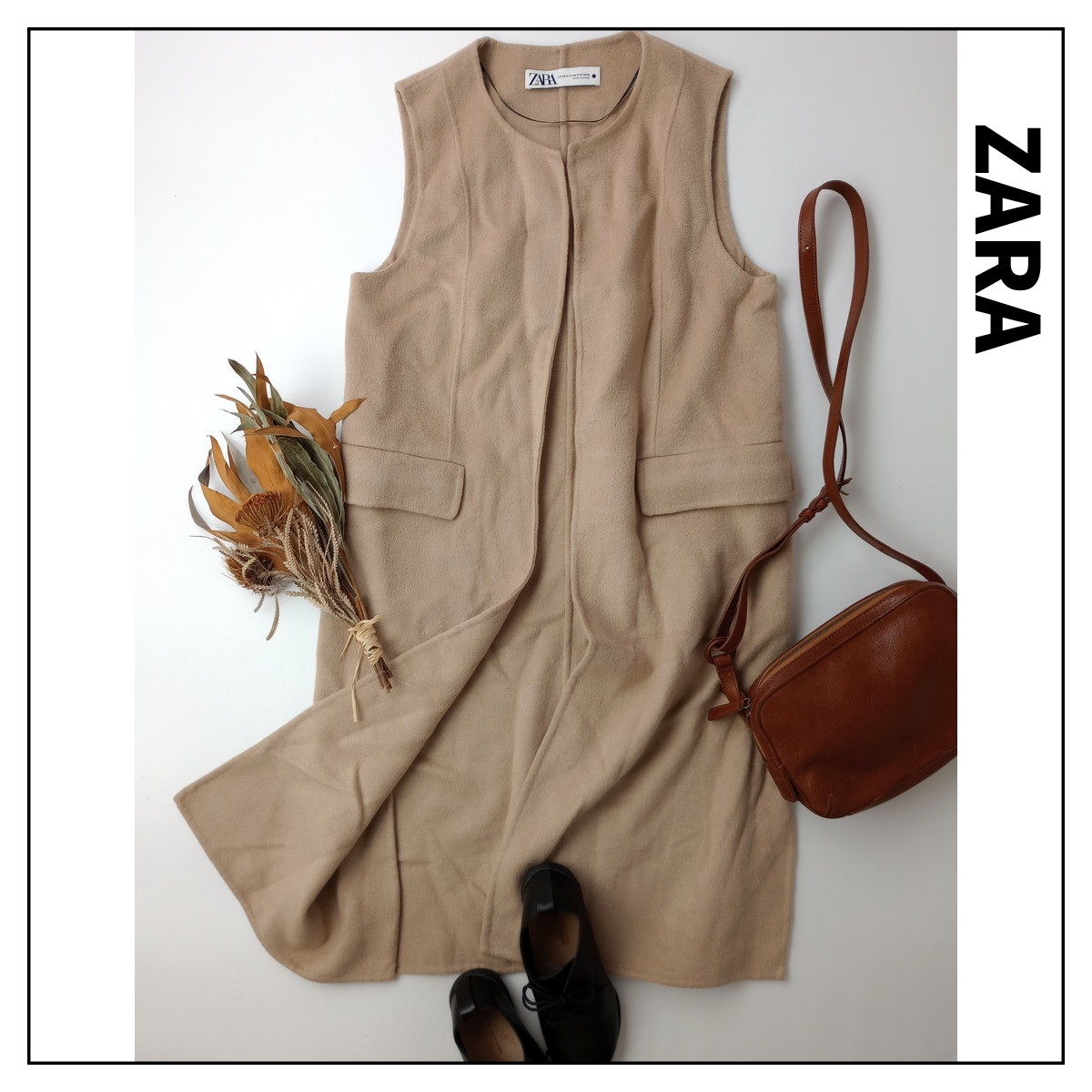 - ZARA ザラ「大人が似合う、とっておきの。」ラムウール 毛 混 ロング ベスト コート 羽織 レイヤード XS-S ベージュ(46M+2973)