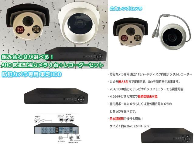 > 【在庫処分セール】防犯カメラ 8台セット 監視カメラ カメラセット 東芝HDD内蔵 1TB ハードディスク 家庭用 ペット 見守りカメラ ④