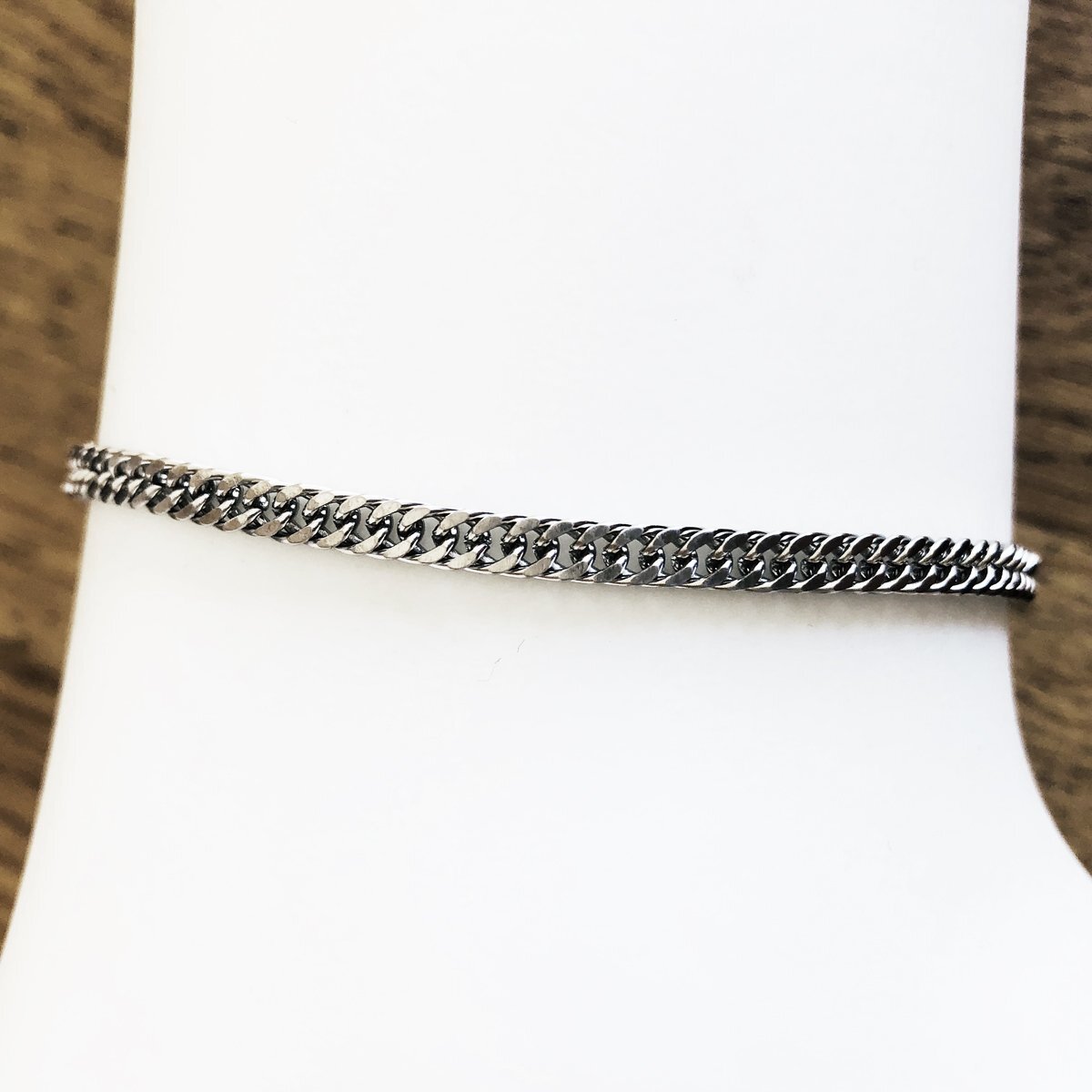 - ステンレスチェーンアンクレット 5.6mm幅 ダブル喜平4面カット 25cm(21cm+4cmアジャスター)