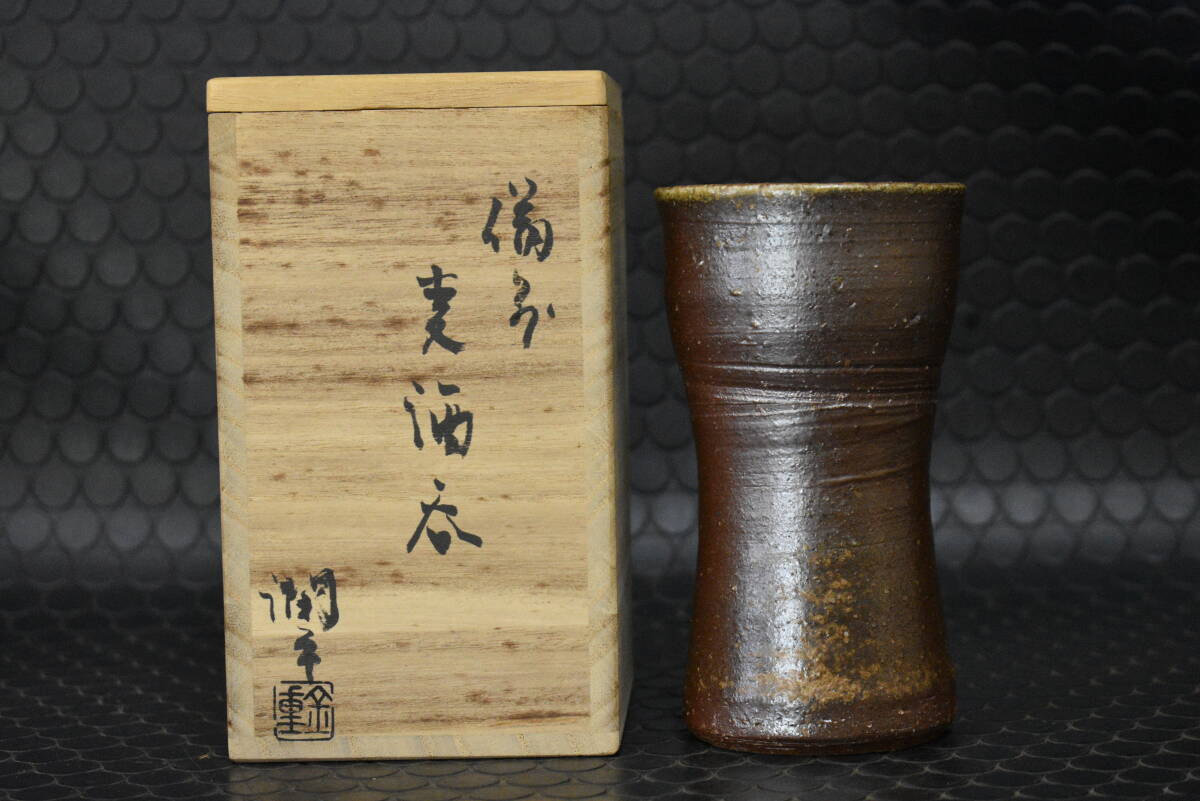 - うぶ品 時代物 金重潤平 造 備前焼 麦酒呑 共箱 ビール杯 酒器 古美術品