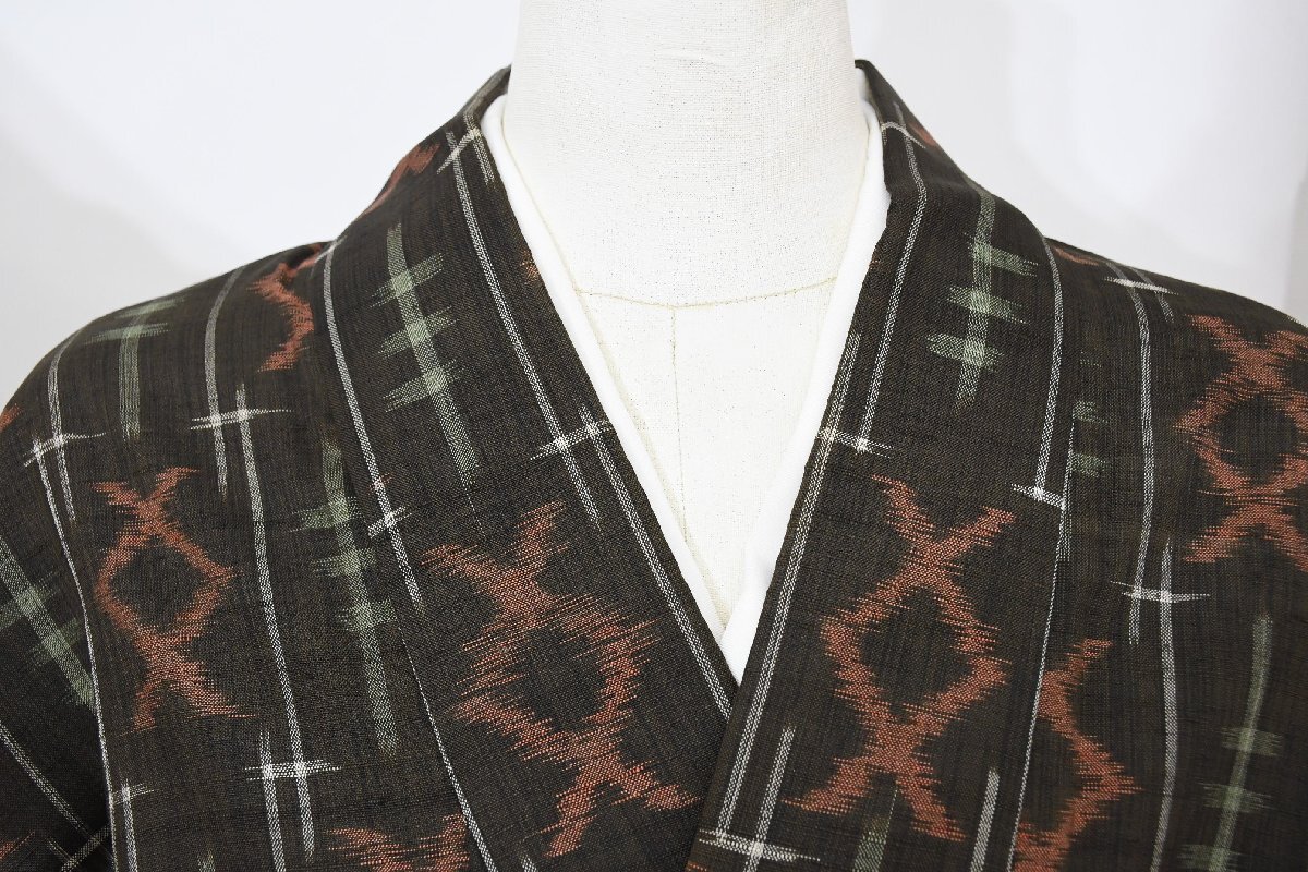 - 紬 つむぎ 渡来文様 絣 正絹 身丈153cm 裄丈66cm ★着物 pb-3639 桜庭呉服店