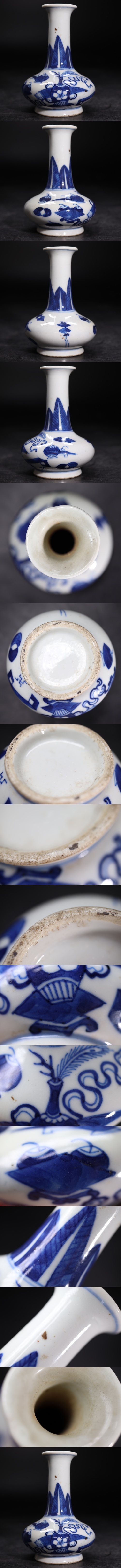 - 時代 染付 宝尽くし文 徳利 / 中国美術 清 新渡 酒器 茶器 煎茶道具 煎茶飾 .G2676