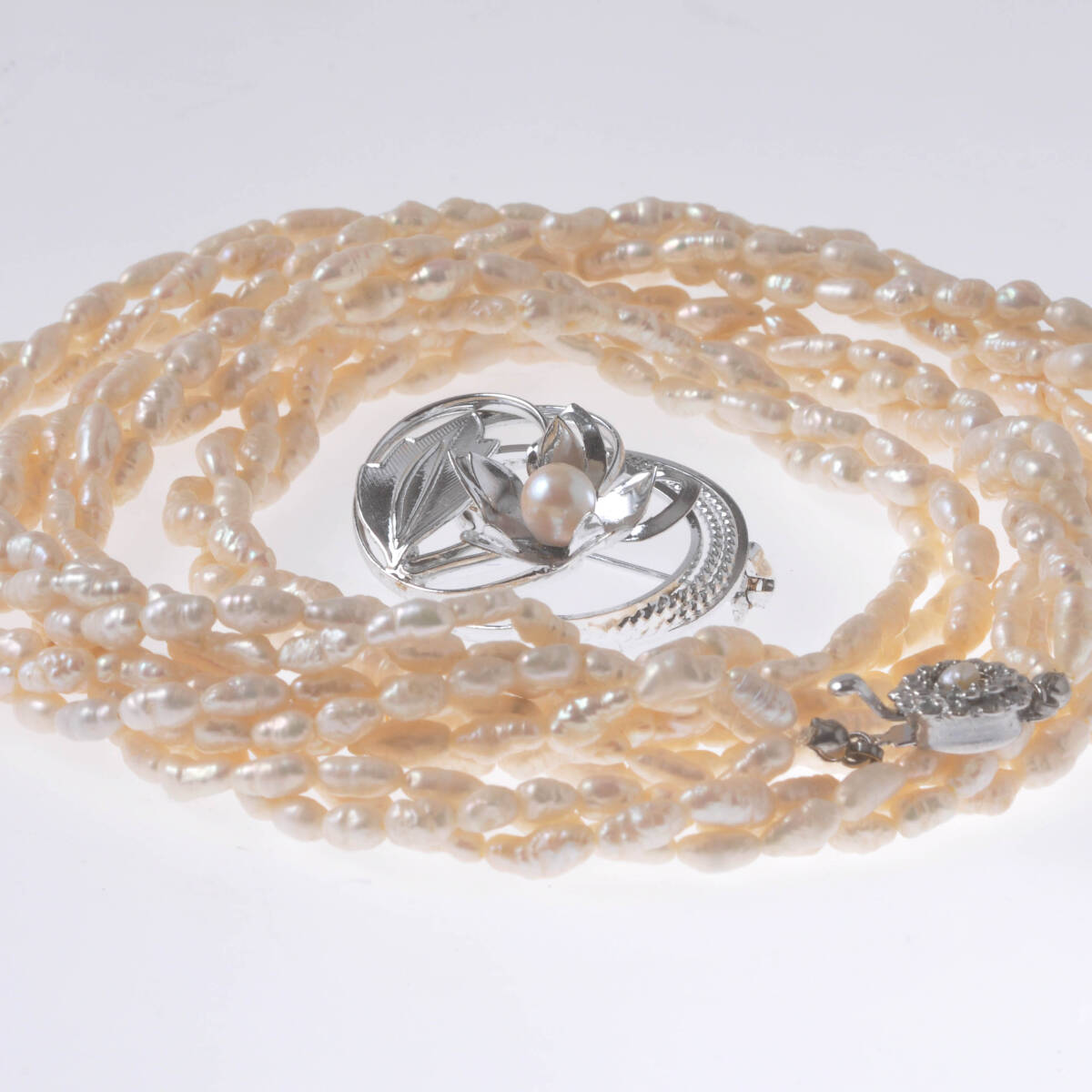 - 美品◇◇淡水真珠ネックレス&ブローチ・シルバー刻印バロック真珠・ゴージャス・冠婚葬祭・116cm◇◇