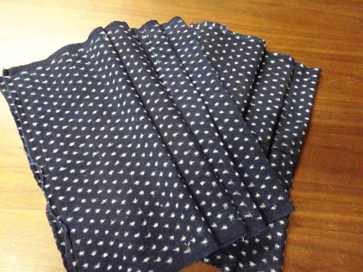 > 1001-4 古布木綿 藍染ゆきんこ絣(5mm)2枚 洗濯済 リメイク素材 一巾146cmx2枚