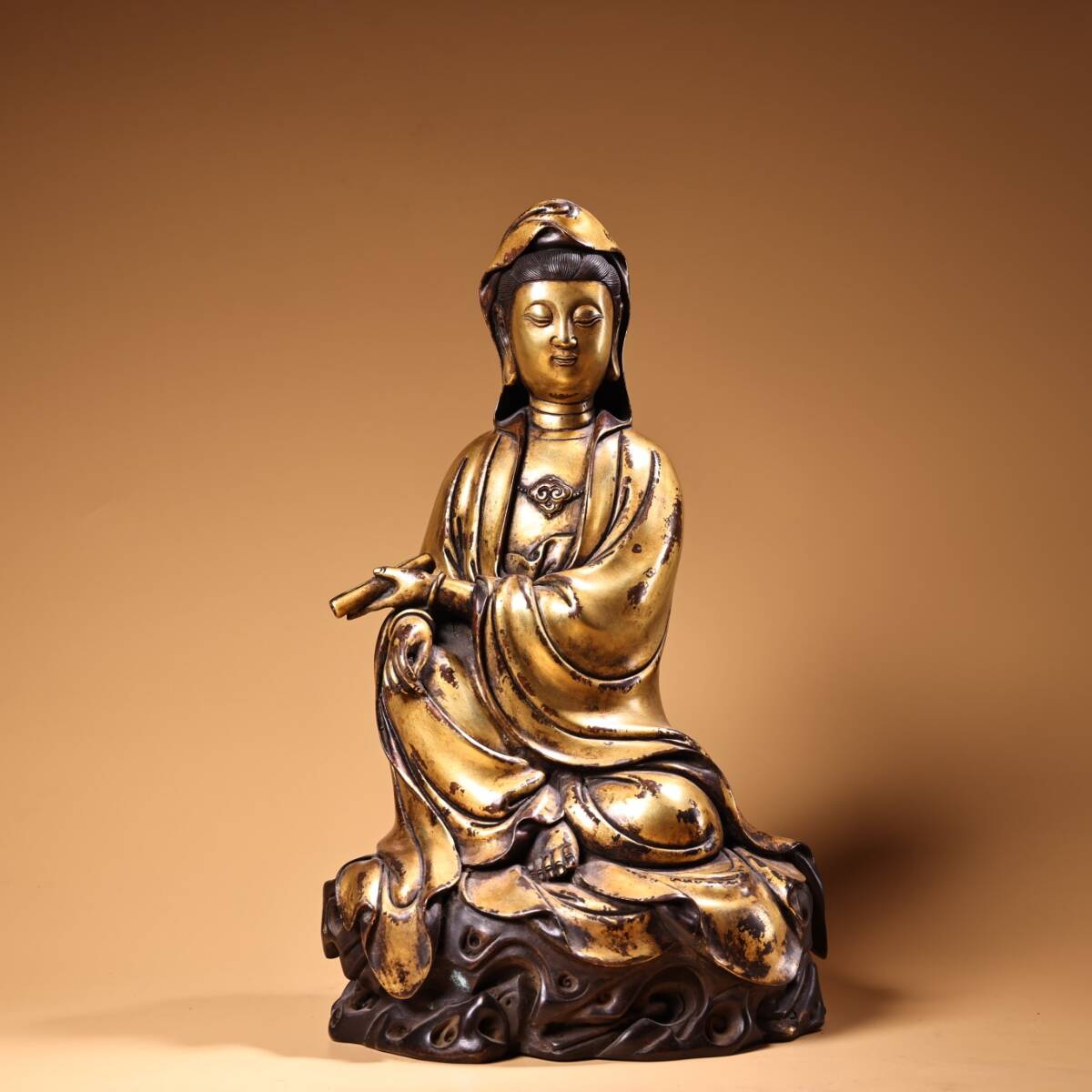- 旧 大明永樂 銅製 鍍金 観音菩薩像1体 古家具 中国古美術 古賞物 古置物 唐物 S710