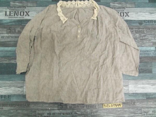 - SUN VALLEY レディース 綿麻 七分袖カットソー M 茶系