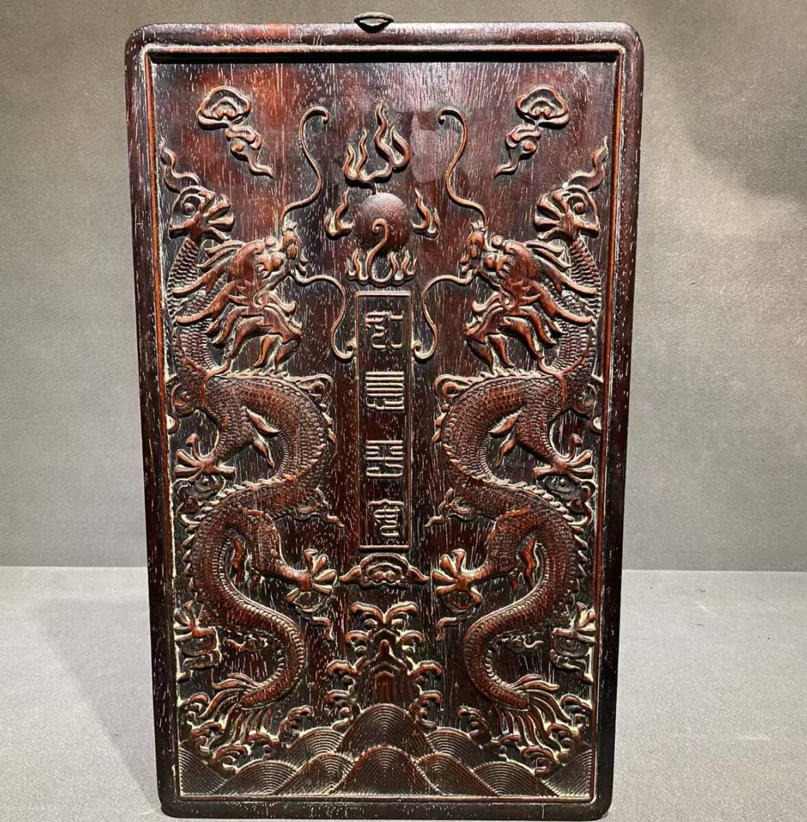 > 清時代 古紫檀木彫 53cm 【雙龍】 掛 秘蔵 中国唐物 時代物 骨董 中国古美術 古家具 古置物 木製 東洋彫刻 古賞物 中国古玩101