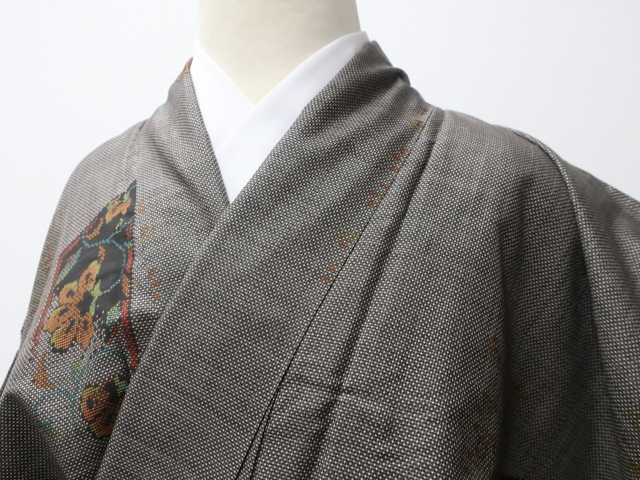 > 《京都一輝堂》【着物】大島紬 7マルキ 唐花文 身丈約161cm 裄丈約64cm 24z-3266