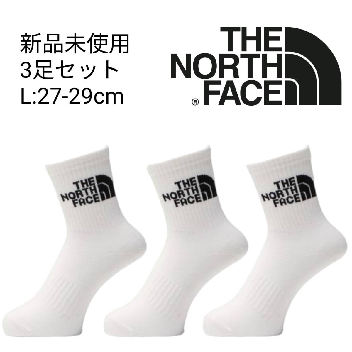 - 新品未使用 ザ ノースフェイス ジャカードロゴ クルー ソックス 白 3足 Lサイズ THE NORTH FACE アウトドア 男女兼用 靴下 ホワイト
