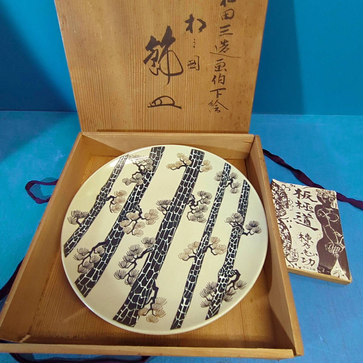 - kankando『和田三造下絵 松之図 飾皿』径28.5cm 京焼 松斎サイン 共箱《真作》