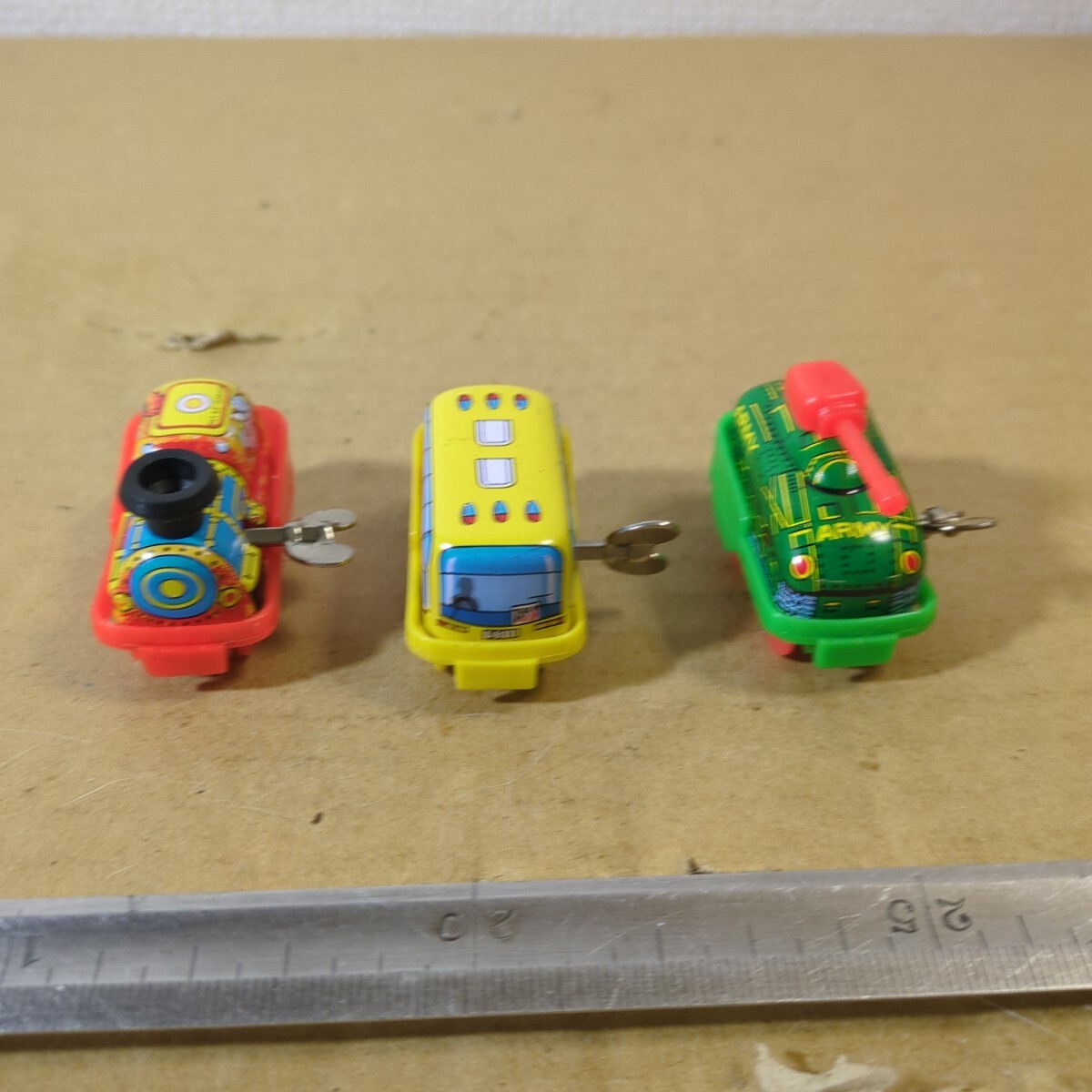 - 三幸製作所 ブリキ ゼンマイ玩具 バス 汽車 戦車 3点 日本製 未チェック 詳細不明 ジャンク扱い トレイン