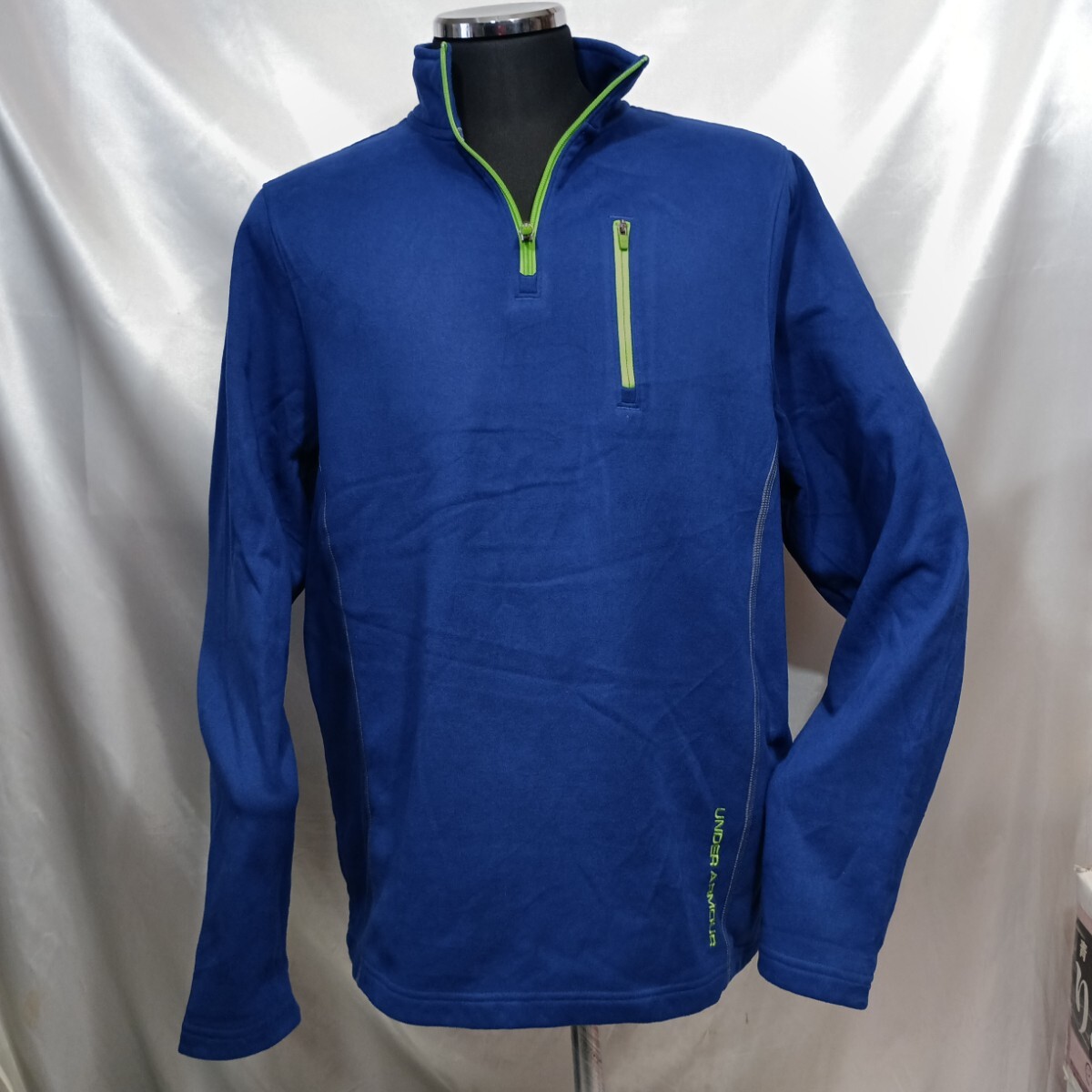> zaa-145♪難有りUSユーズド★アンダーアーマーUNDER ARMOURフリースジャケットハーフジップLサイズ ダークブルー