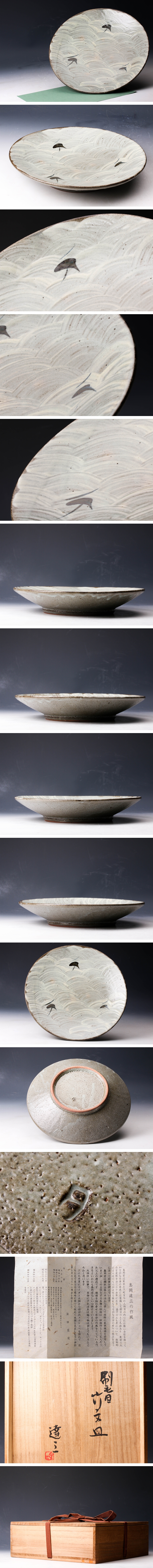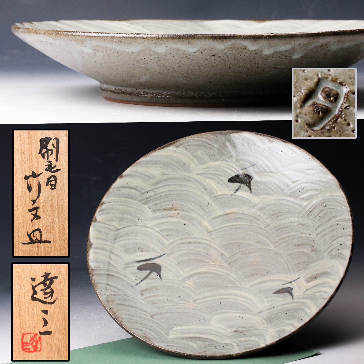 【佳香】人間国宝 島岡達三 幅27cm 刷毛目竹文皿 共箱 栞 本物保証
