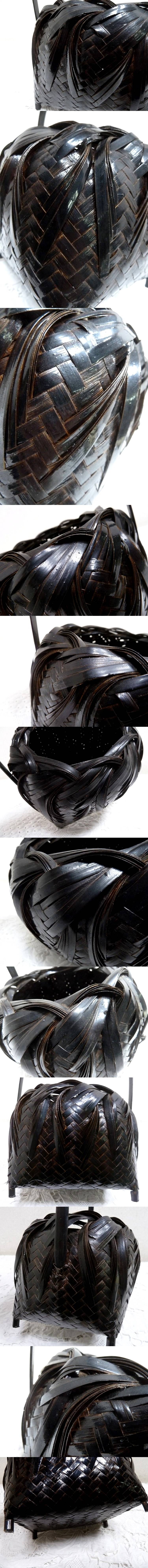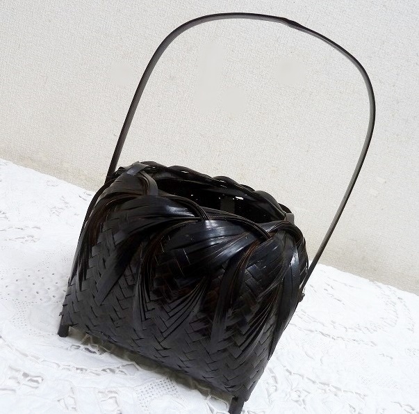 - (☆BM)木製 花籠/竹籠 持ち手付き 全高25㎝ 花器 竹細工 篭 華道具 花入れ 日本伝統工芸 天然木 バスケット