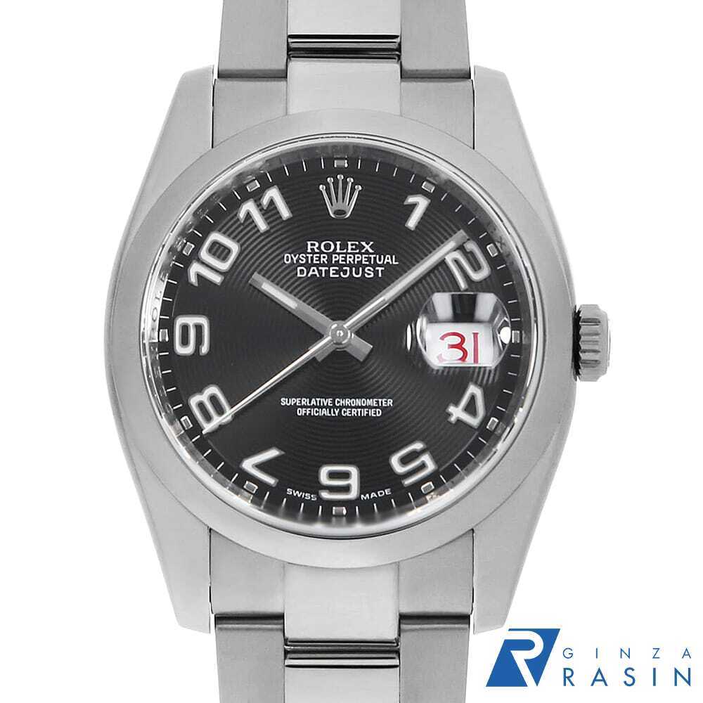 - ロレックス デイトジャスト 116200 ブラック コンセントリック アラビア 3列 オイスターブレス M番 中古 メンズ 腕時計