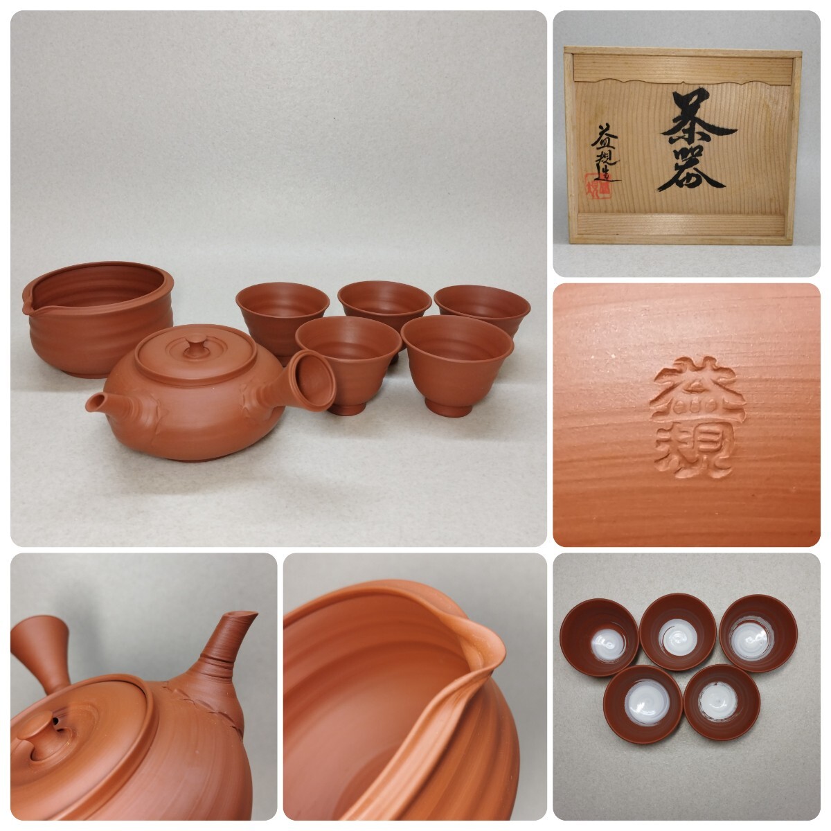- 常滑焼 名工 村田益規 益規造 茶器 急須 湯冷まし 茶碗 煎茶道具 揃え 横手急須 古民家整理品a